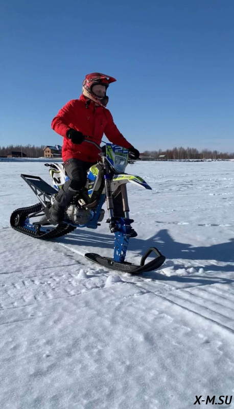 Folk 121 от Snowbike — универсальный гусеничный комплект для внедорожных мотоциклов. Гусеничный мотоцикл (СНОУБАЙК) это, по сути, одноколейный снегоход. Вы получаете возможность продлить мото сезон и эксплуатировать мотоцикл не только летом но и зимой.
